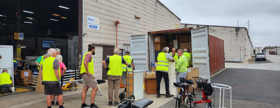“Dressings and bandages, cleaning products, phototherapy light, medical books, shelving, bedside tables, operating table, anaesthetic trolley, mother baby bundles, shoes, surgical instruments ...............and so much more. Happy to help with your fabulous project” - Kaylene shares with Medina what is being sourced in the final days before packing the shipping container. Two very happy midwives supported by a team of volunteers from Rotary and AAI.